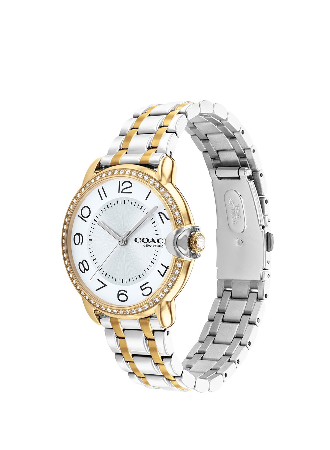 - The stainless steel case and stylish silver-gold bracelet strap create a sophisticated look that complements any outfit