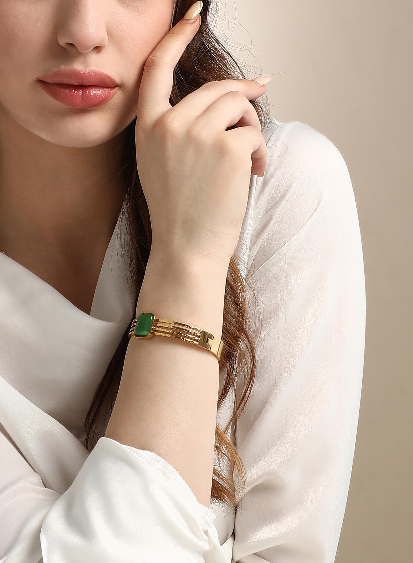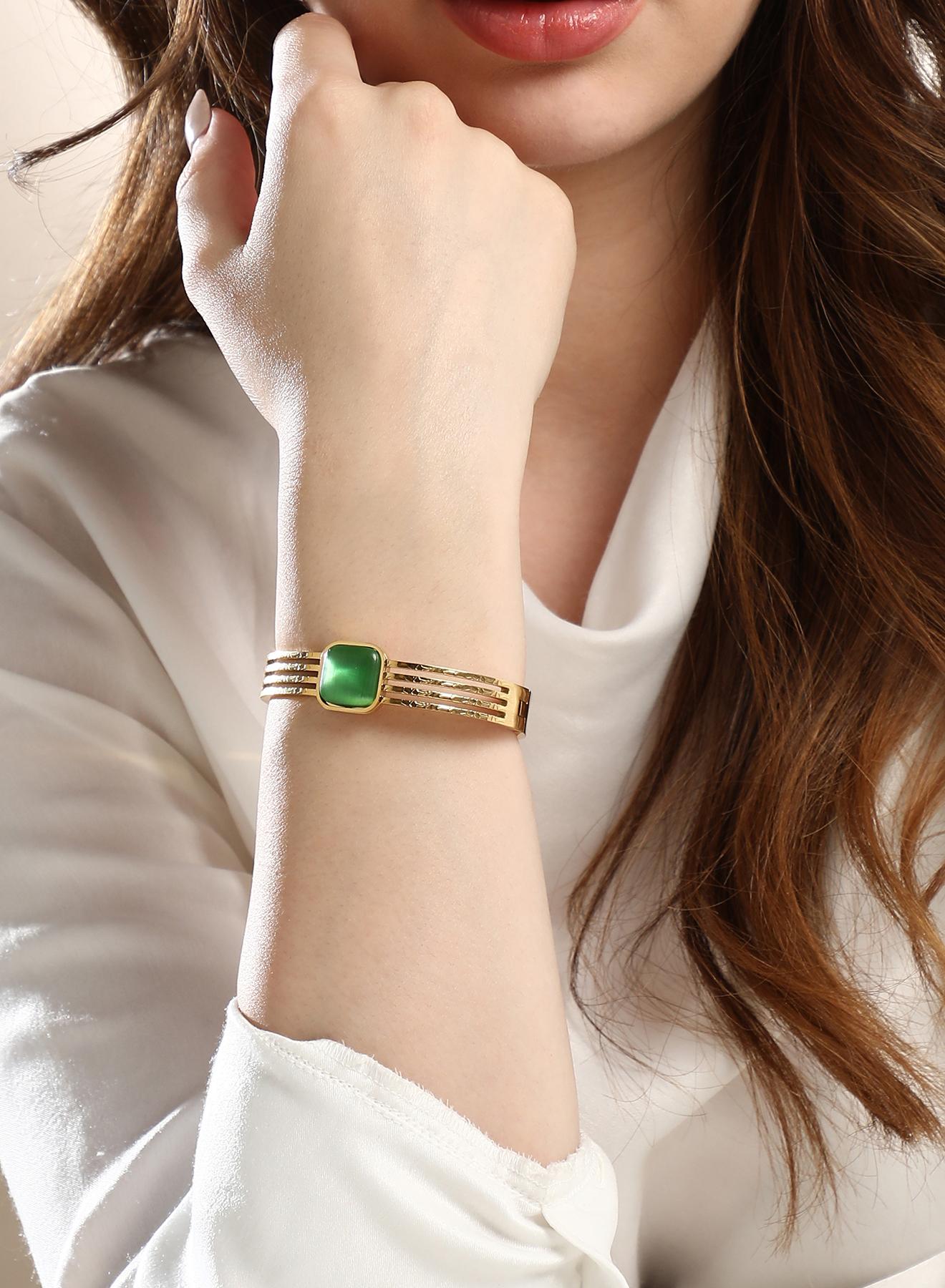 There are a lot of different types of bracelets for women out there. Some are more aesthetic, while others are better for special occasions like birthdays or anniversaries. And then there are those that are best suited for everyday wear. Whatever your needs, there is surely a bracelet out there that will fit the bill. One popular type of bracelet is the charm bracelet. These bracelets come with a variety of charms that can represent different things, from your hobbies to your favorite people. Charm bracelets are a great way to show off your personality. Another popular type of bracelet is the beaded bracelet. These bracelets are made with a variety of beads in different colors and sizes. Beaded bracelets can be worn as part of an outfit or as a standalone accessory. No matter what type of bracelet you're looking for, there is sure to be one that will suit your needs. When it comes to choosing the right piece of jewelry, it is important to consider the metal type and color. For example, golden or rose gold bangles are popular among women. Some women also prefer bracelets that are plated with different metals, such as silver or platinum. Other factors to consider when choosing jewelry for women include the style of the piece and the occasion for which it will be worn. Whether it's a bracelet for your best friend or a necklace for your sister, jewelry is always a thoughtful and appreciated gift. And with so many different styles to choose from, you're sure to find the perfect piece for everyone on your list. If you're looking for the perfect gift for your best friend, girlfriend, or even yourself, check out our selection of beautiful friendship bracelets! Whether you're looking for something simple or something adorned with charms and crystals, we have the perfect bracelet for you. الستايل : كاجوال طول المنتج: 22.0 سنتيمتر عرض/عمق المنتج: 2.0 سنتيمتر اللون: green الجنس: أنثى الطبقة النهائية: مطلي بالذهب