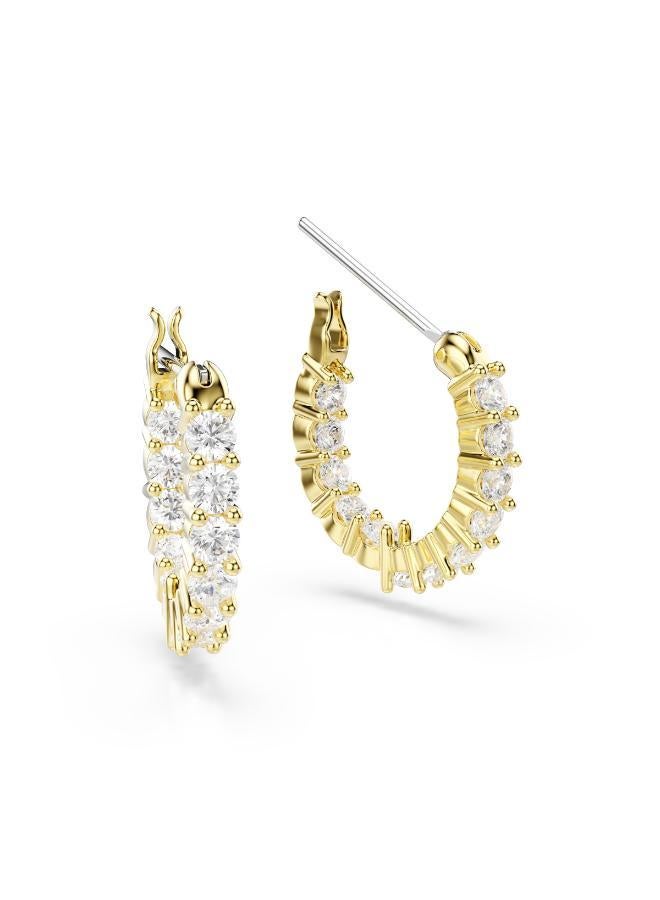 These pierced mini hoops by Swarovski are a radiant and timeless piece of jewelry- Both earrings are gold-tone plated and decorated with numerous Swarovski Zirconia that enhance their attractive look with subtle shimmer